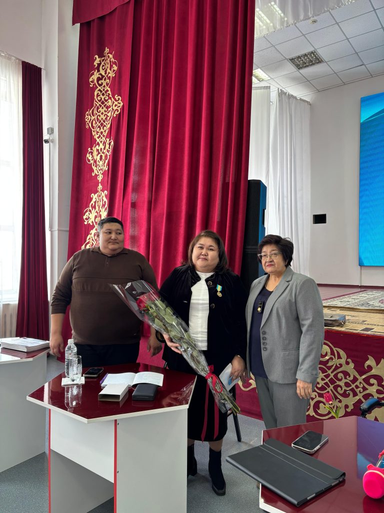 Салтанатты бөлімде Науразбаева Гульбарам Ауэзхановна әлеуметтік әріптес Билялова Жайнат Каликайдаровнаны әлеуметтік әріптестікті дамытуға қосқан үлесі үшін төсбелгімен марапаттады.