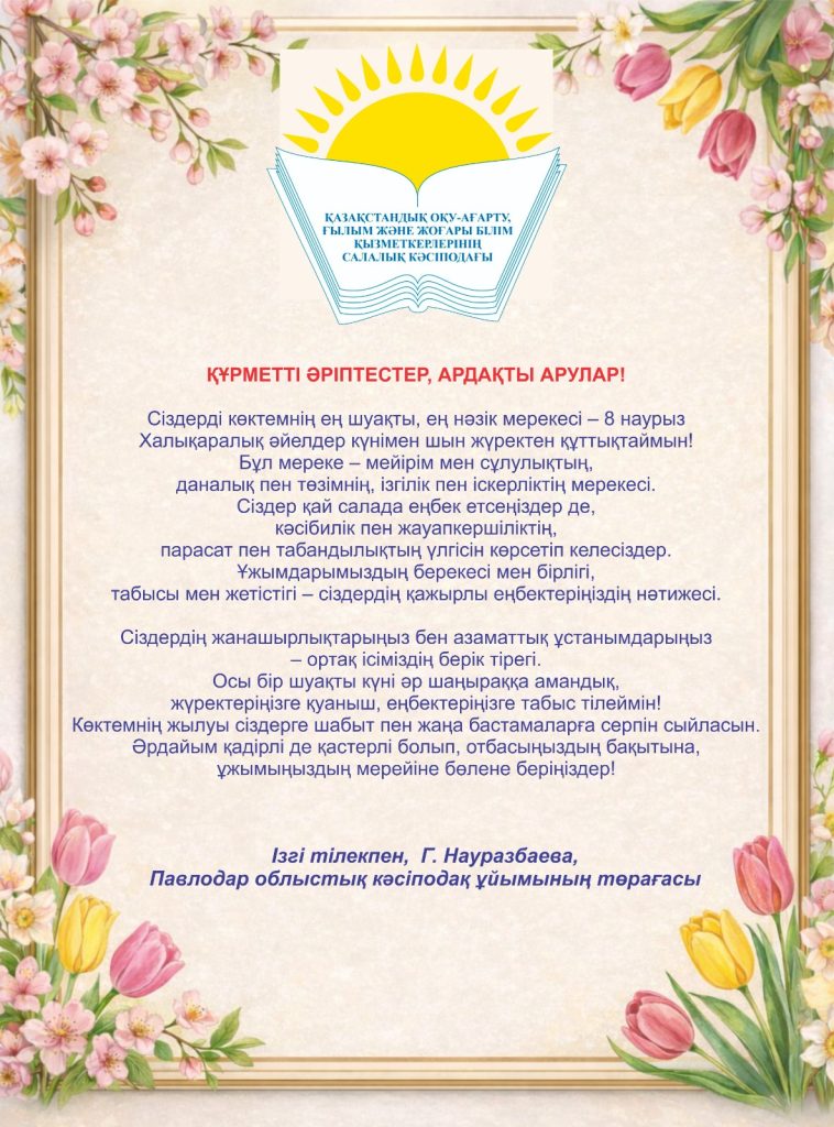 «Қазақстандық оқу-ағарту, ғылым және жоғары білім қызметкерлері салалық кәсіптік одағының Павлодар облыстық ұйымы» қоғамдық бірлестігі.